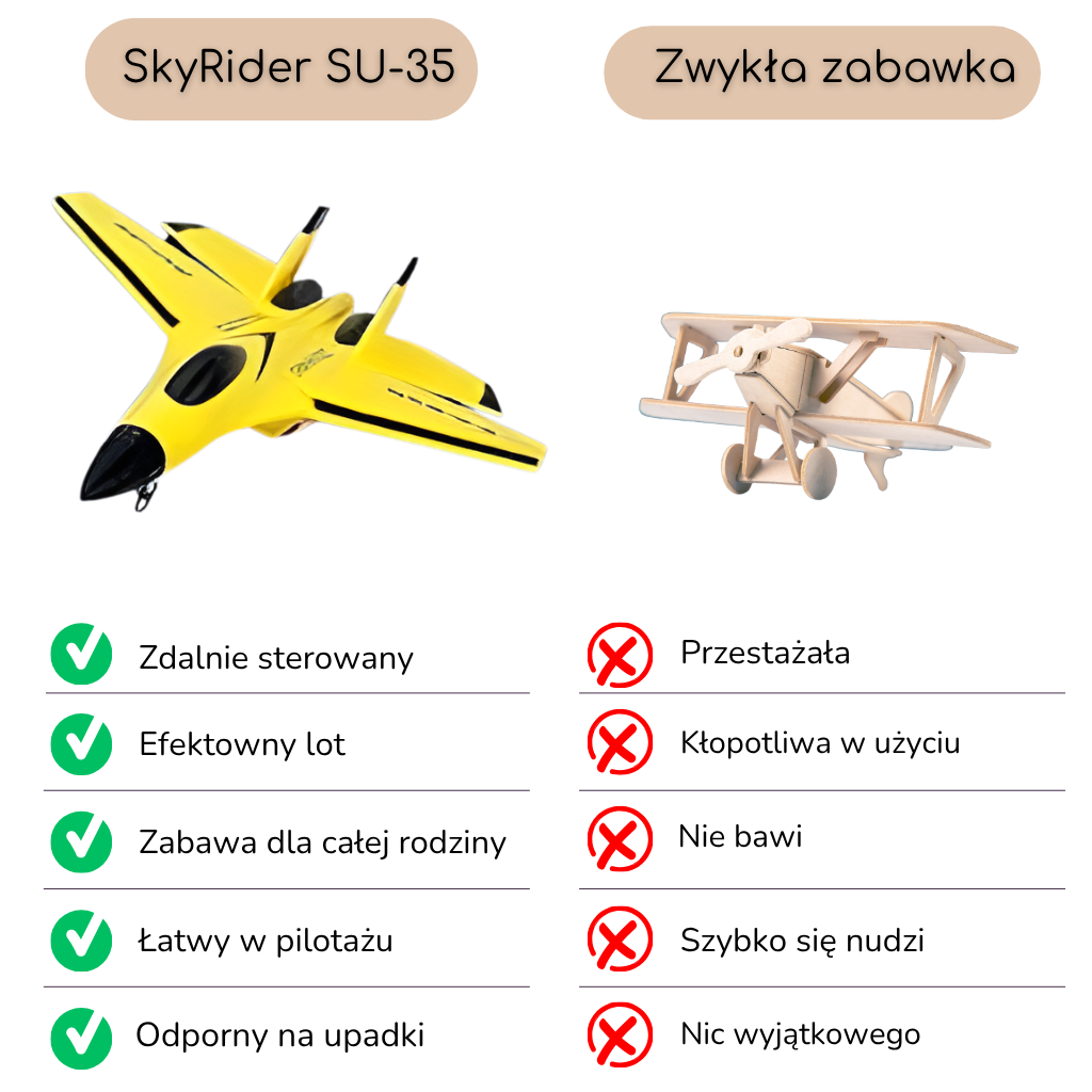Samolot SkyRider unosi się lekko, świeci w powietrzu i daje masę frajdy od pierwszego startu. Wystarczy chwila, żeby wspólne popołudnie zamieniło się w coś wyjątkowego.