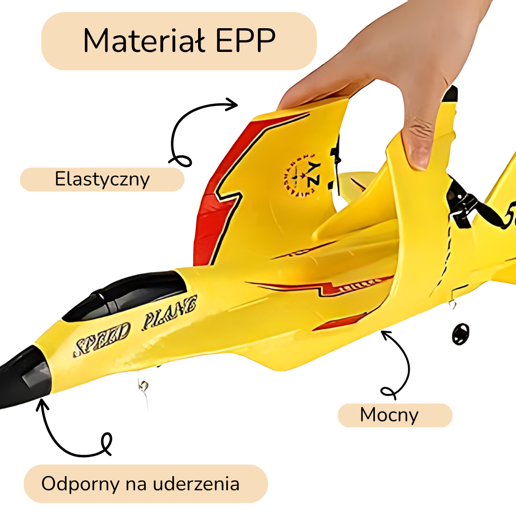 Model zbudowany jest z elastycznego materiału EPP, który jest wyjątkowo lekki, a zarazem elastyczny i wytrzymały na uderzenia.
