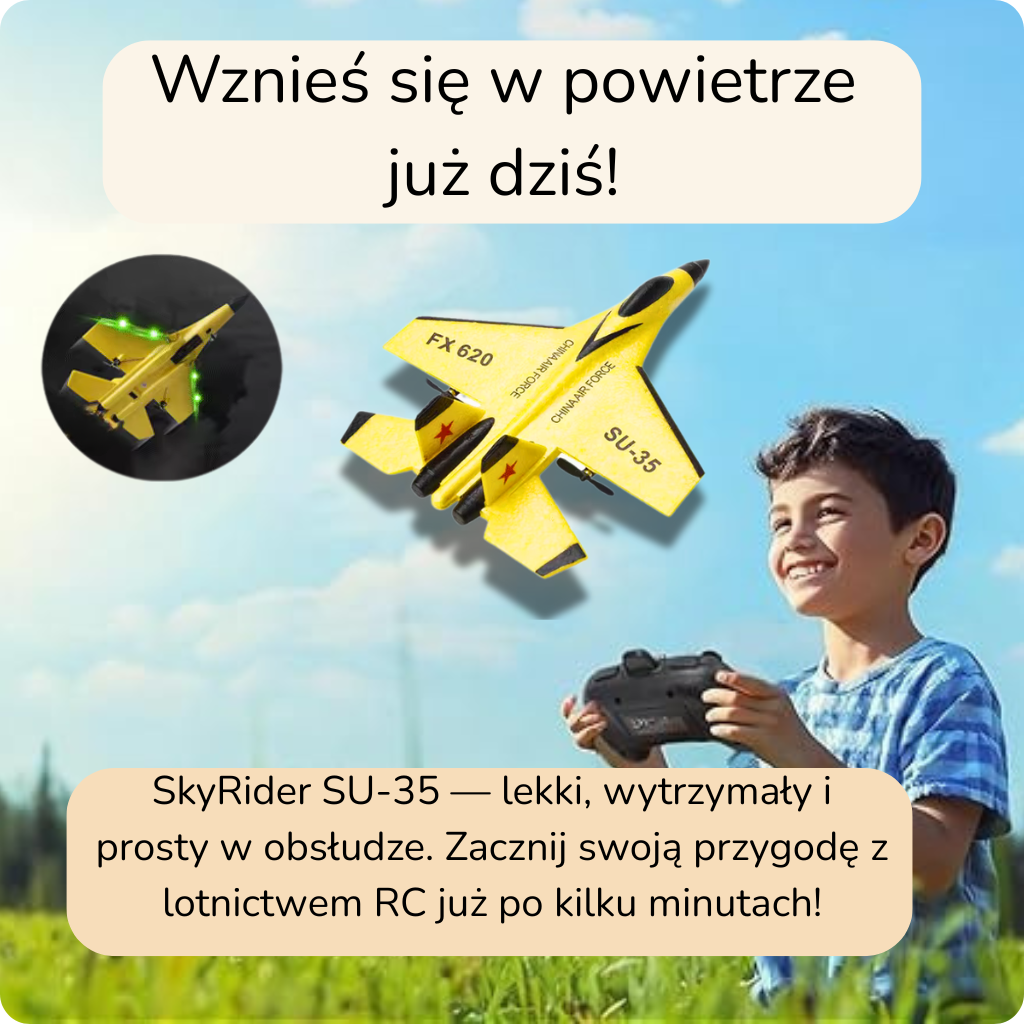 Samolot SkyRider unosi się lekko, świeci w powietrzu i daje masę frajdy od pierwszego startu. Wystarczy chwila, żeby wspólne popołudnie zamieniło się w coś wyjątkowego.